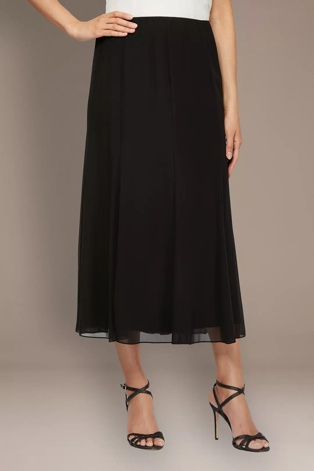 This figure-flattering chiffon A-line midi skirt pairs beautifully with any of our shirt separates.