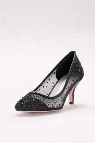 Chic and sophisticated, these pointed-toe, mid-heel mesh pumps glitter with a sprinkling of crystals.