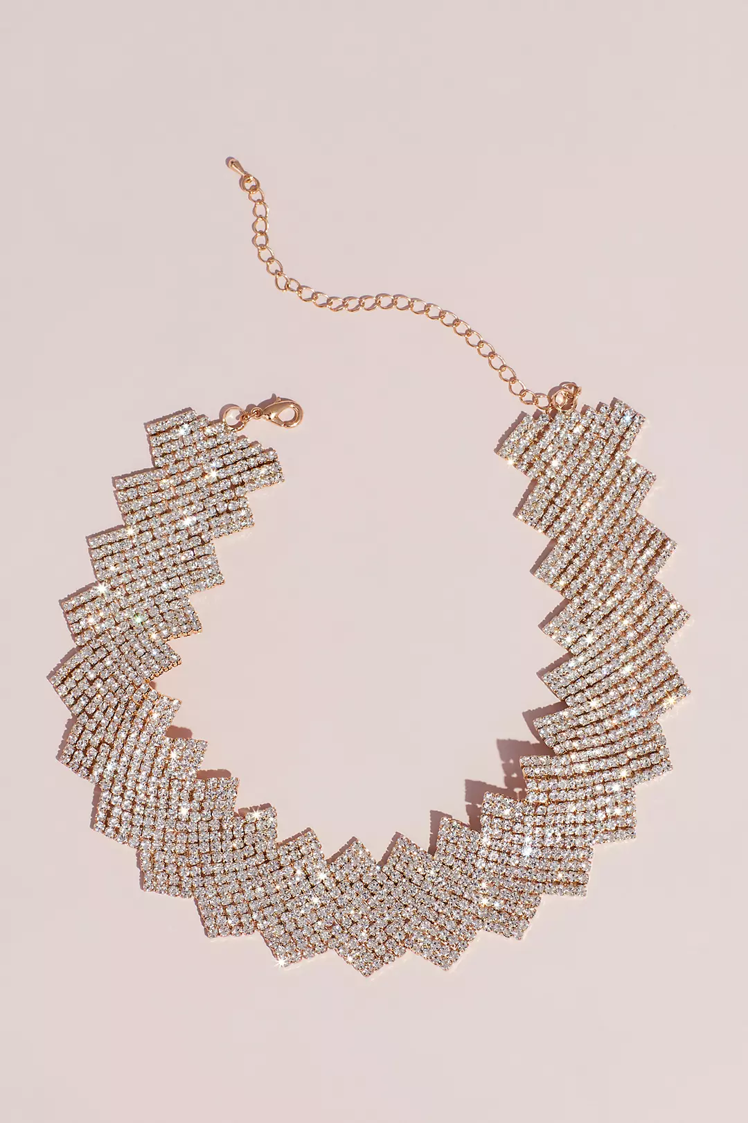 Rows of crystal mesh move in a fluid zigzag shape on this exquisite statement necklace.